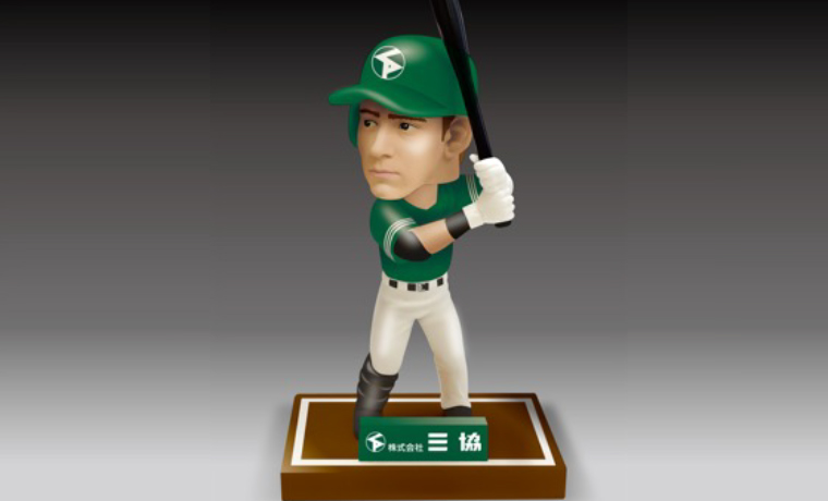 プロ野球選手の顔写真とポーズ写真などから、選手の特徴を生かしつつデフォルメしたボブルヘッド人形を製作しました。